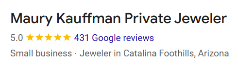 "Experienced, knowledgeable and educated, he is considerably more than a simple Tucson jewelry store. Maury provides a unique personalized service for all of your fine jewelry diamond and gemstone needs. Your diamond engagement ring and wedding bands will be of an exceptional quality and value compared to other Tucson jewelry stores." Please read his client's testimonials.